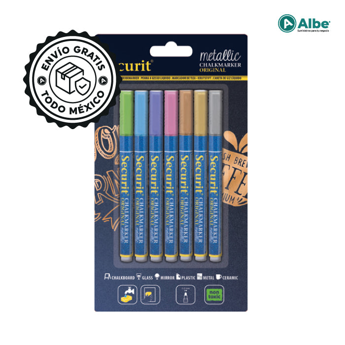 Paquete de 7 Marcadores de Tiza Punta Fina 1 a 2 mm.