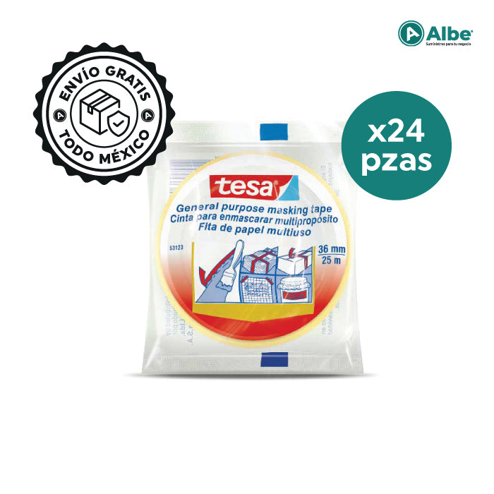 Masking Tape 36mm x 25mts. 1 Pieza o Caja con 24 Piezas. Marca TESA