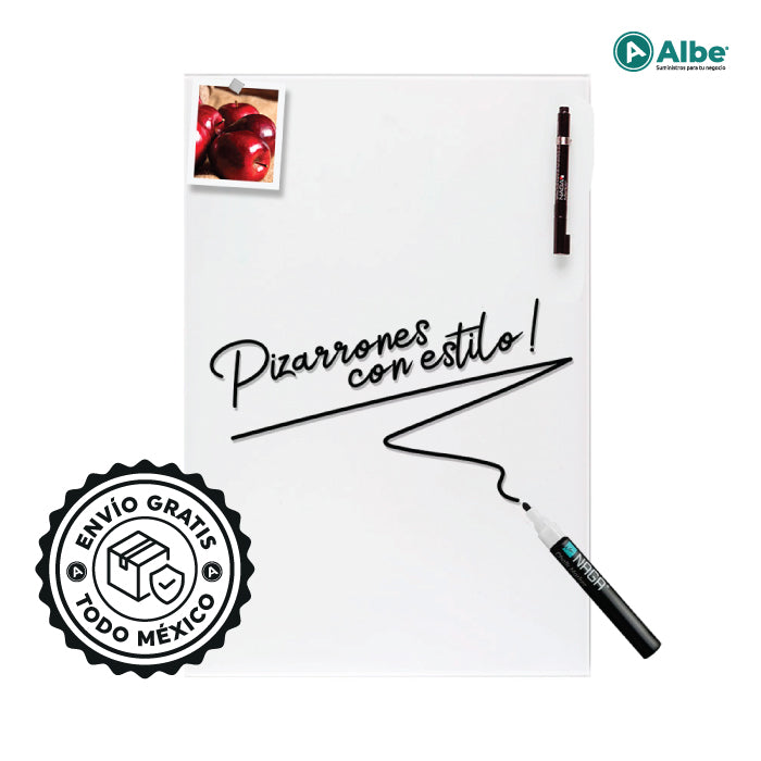 Pizarrón Cristal Imantado 40x60cm Blanco Marca NAGA