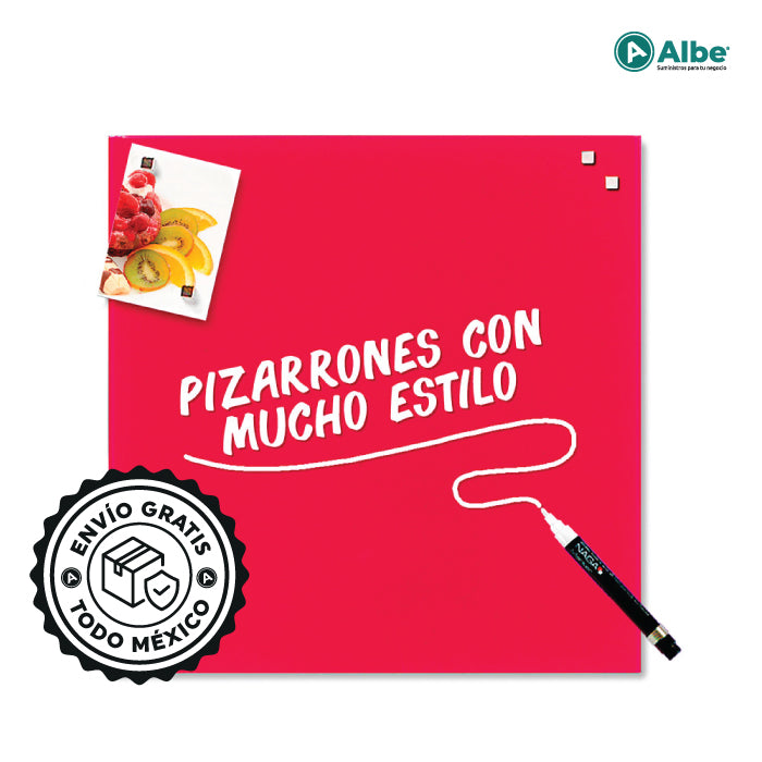 Pizarrón Cristal Imantado 45x45cm Rojo Marca NAGA