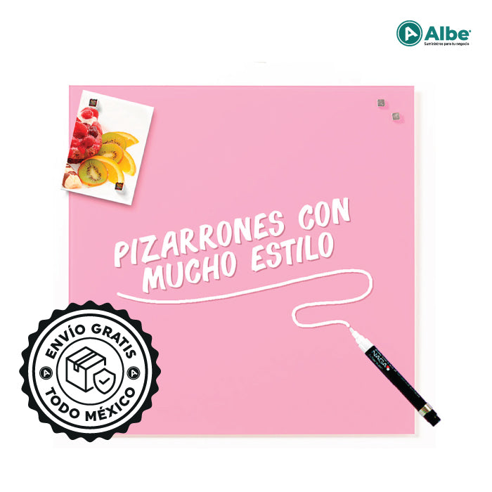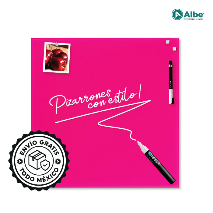 Pizarrón Cristal Imantado 45x45cm Rosa Marca NAGA