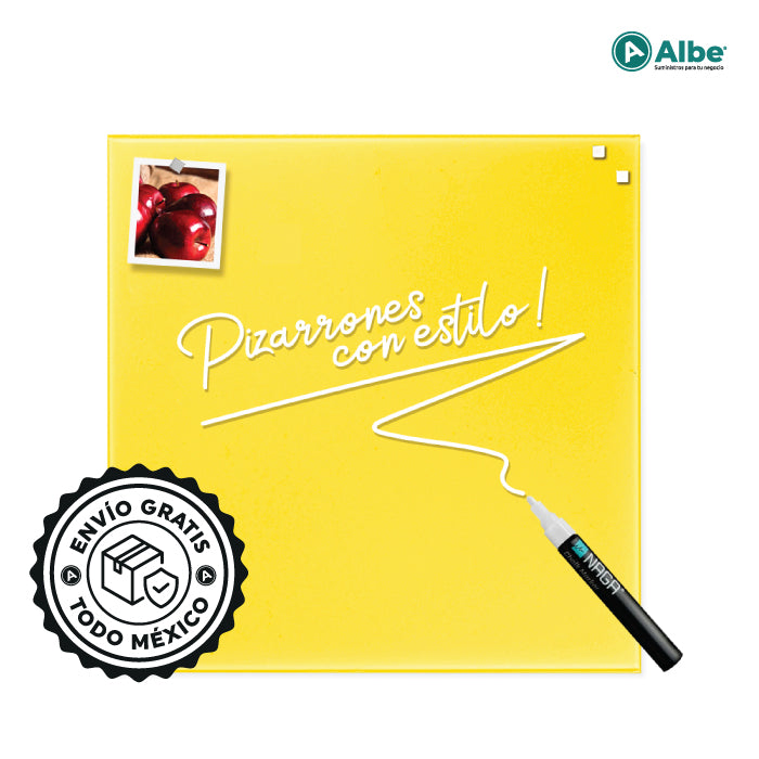 Pizarrón Cristal Imantado 45x45cm Amarillo Marca NAGA