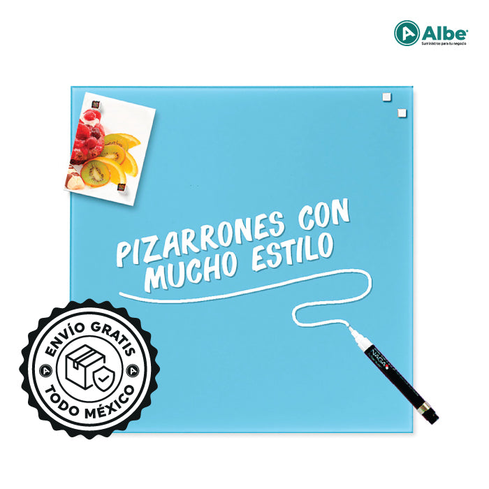 Pizarrón Cristal Imantado 45x45cm Azul Claro. Marca NAGA