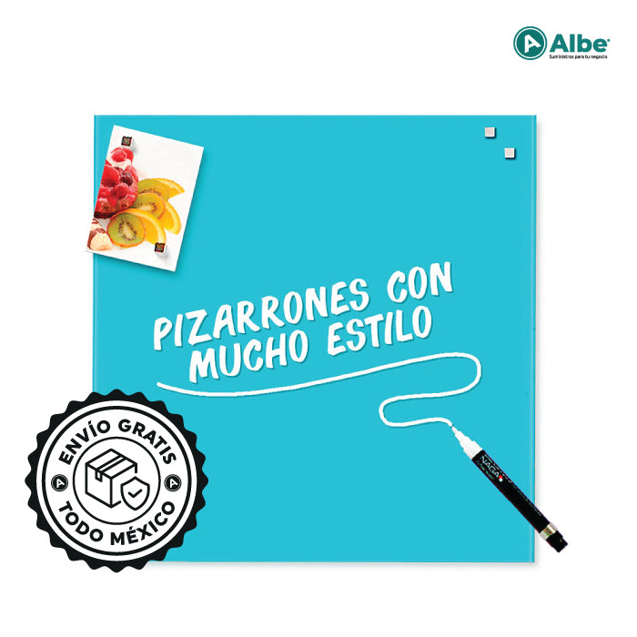 Pizarrón Cristal Imantado 45x45cm Turquesa. Marca NAGA