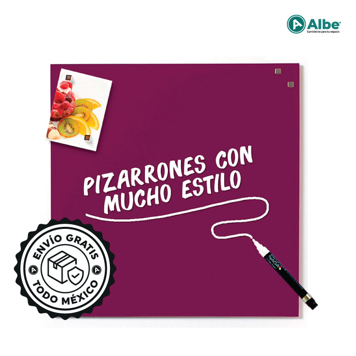 Pizarrón Cristal Imantado 45x45 Morado. Marca NAGA