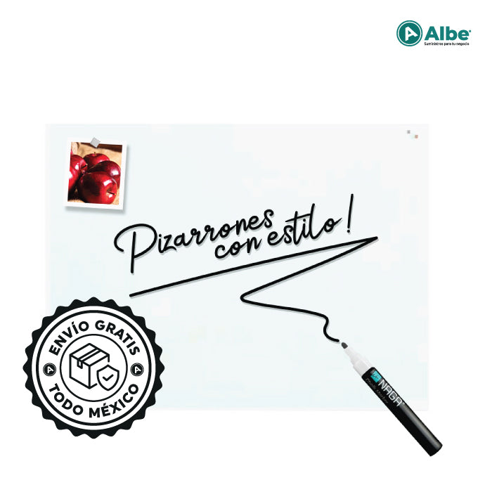 Pizarrón Cristal Imantado 120x90cm Blanco Marca NAGA