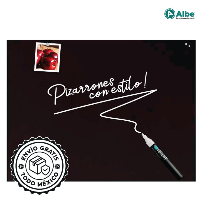 Pizarrón de Cristal Imantado 150x120cm Negro Marca NAGA.
