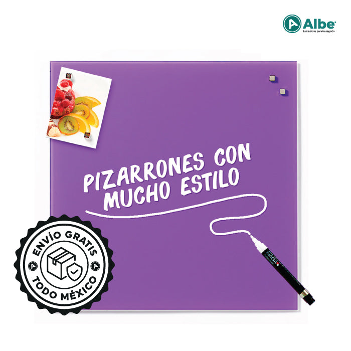 Pizarrón Cristal Imantado 45x45cm Lila. Marca NAGA