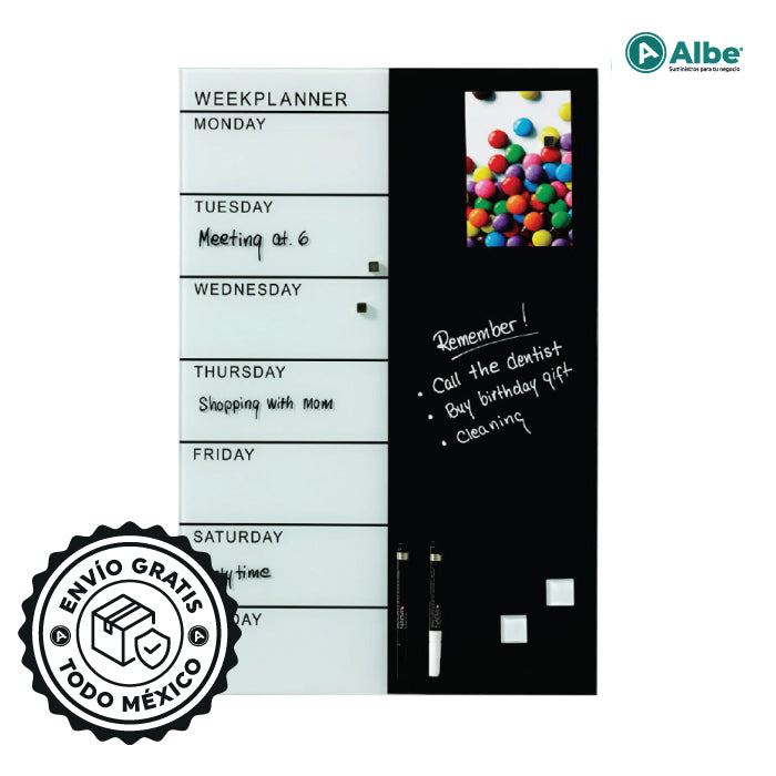 Pizarrón Cristal Imantado 40x60cm Planificador Semanal Marca NAGA