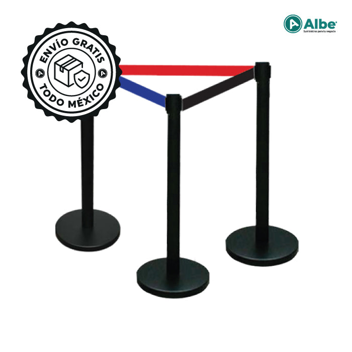 Poste Unilínea Negro con Cinta Negra de 2 mts ...